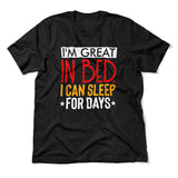 I'm Great In Bed, I Can Sleep For Days Men/Unisex T-Shirt