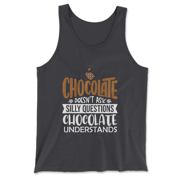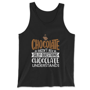 Chocolate Doesn't Ask Silly Questions, Chocolate UndestandsThis must-have unisex tank is updated with a modern fit, featuring a rounded neck and designed with superior combed and ring-spun cotton. PREMIUM QUALITY APPAREL Don't get burned by cheap quality shirts online ever...