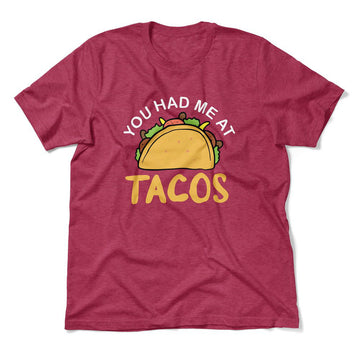 You Had Me At TacosThis updated unisex essential fits like a well-loved favorite, featuring a crew neck, short sleeves and designed with superior combed and ring-spun cotton. PREMIUM QUALITY APPAREL Don't get burned by cheap quality shirts online ever again....