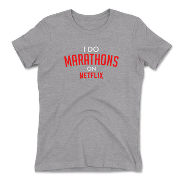 I Do Marathons On NetflixThis super-soft premium tee is instantly loved by all who wear it. Please note, our women's t-shirt runs a little bit small. We suggest ordering a size up. PREMIUM QUALITY APPAREL Don't get burned by cheap...